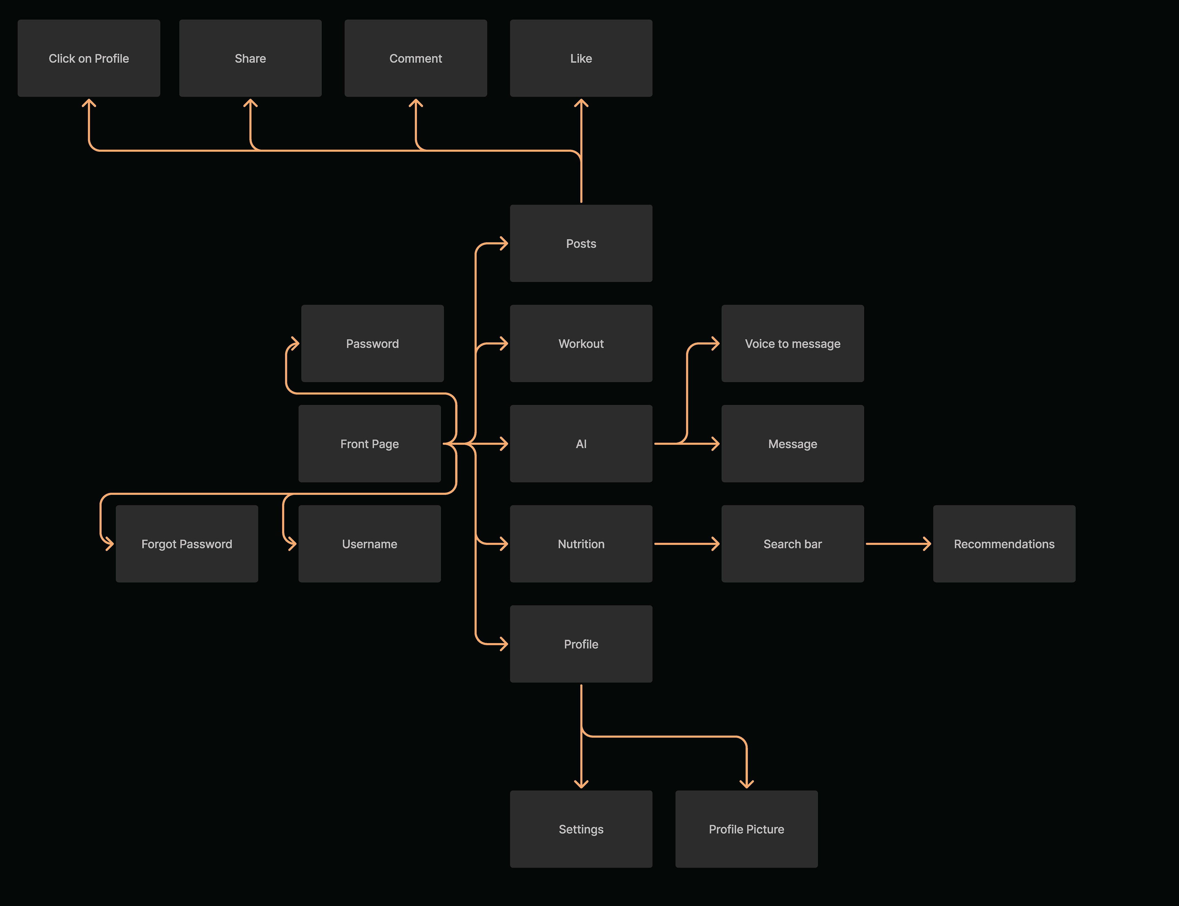 Early wireframes explored core navigation, workout logging flow, and nutrition layouts. This stage focused on structure and usability, allowing quick iteration before visual styling was applied.