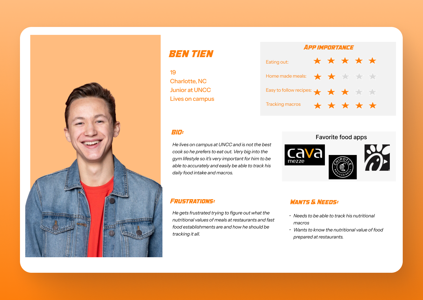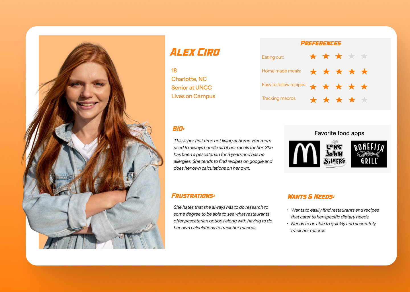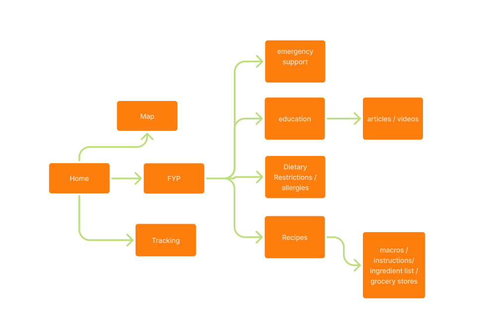 Mapping the user journey revealed opportunities for clearer navigation, streamlined meal browsing, and more accessible nutritional summaries. These insights guided the app’s structure and flow.
